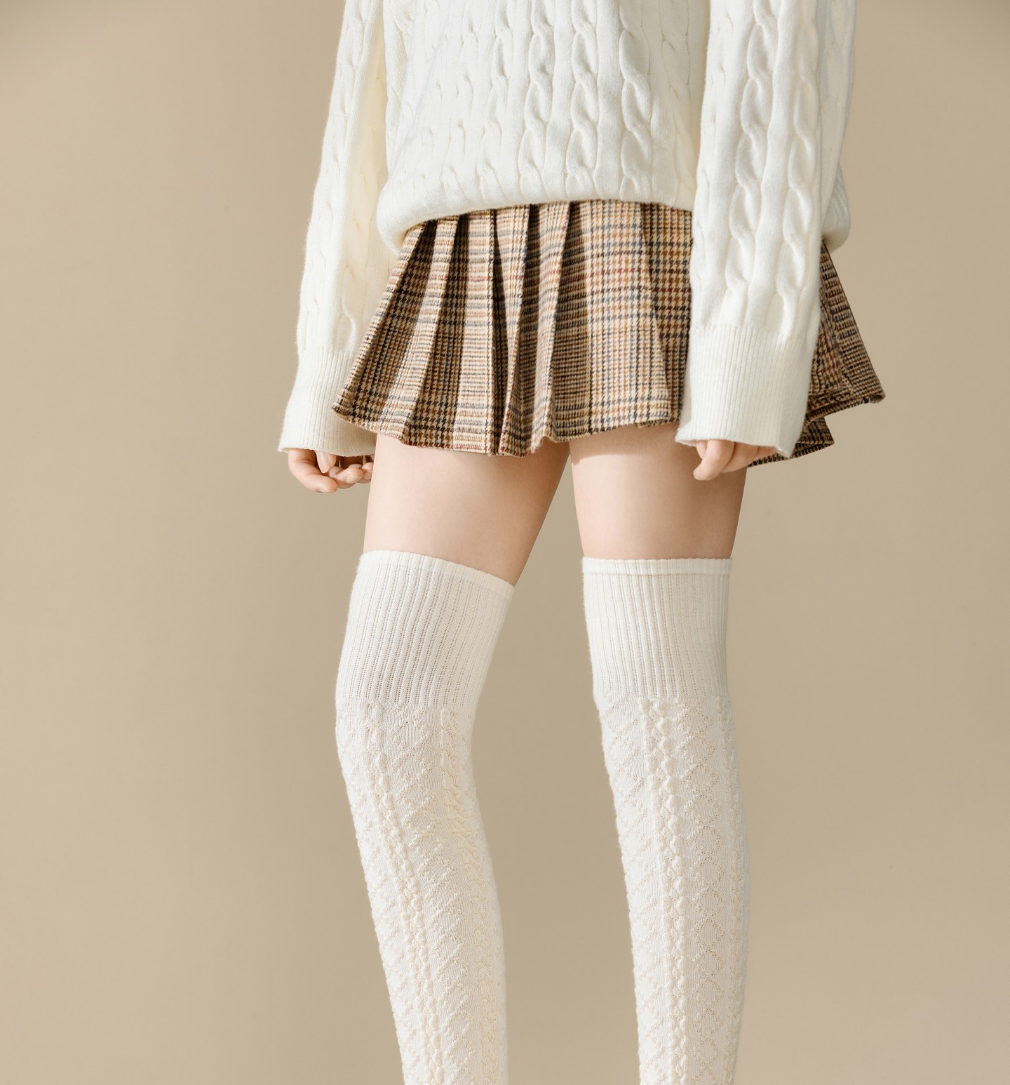 Calcetines largos de punto trenzado para mujer por encima de la rodilla